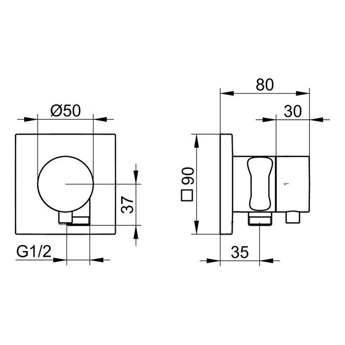 59557011202 IXMO Запорный вентиль с переключателем на 2 потребителя, с держателем лейки, подходит к внутренней части арт. 59556000170, хром