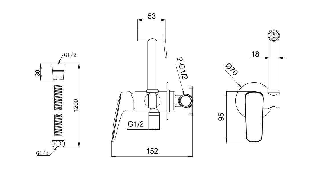 AQ1019CR ВЕГА комплект для гигиенического душа встроенный (смеситель + гигиеническая лейка + шланг)