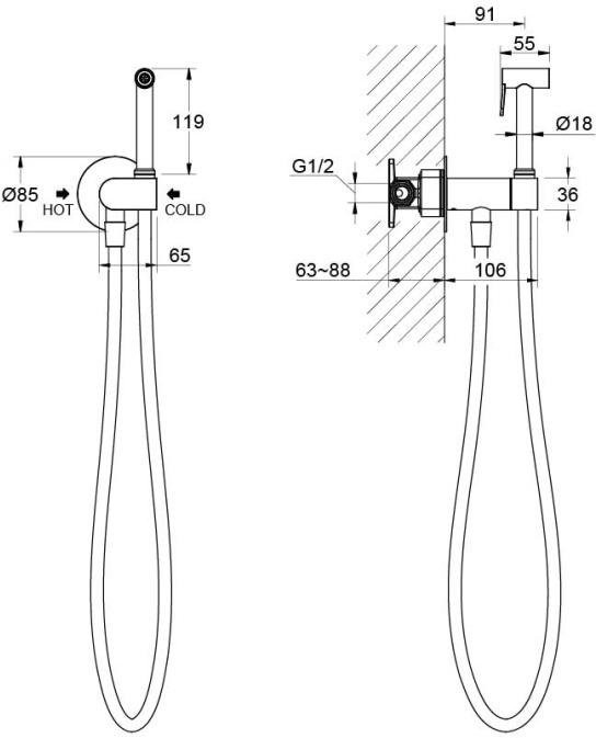 AQ1024CR ОБЕРОН комплект для гигиенического душа встроенный (смеситель c прогрессивным картриджем + гигиеническая лейка + шланг)
