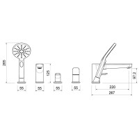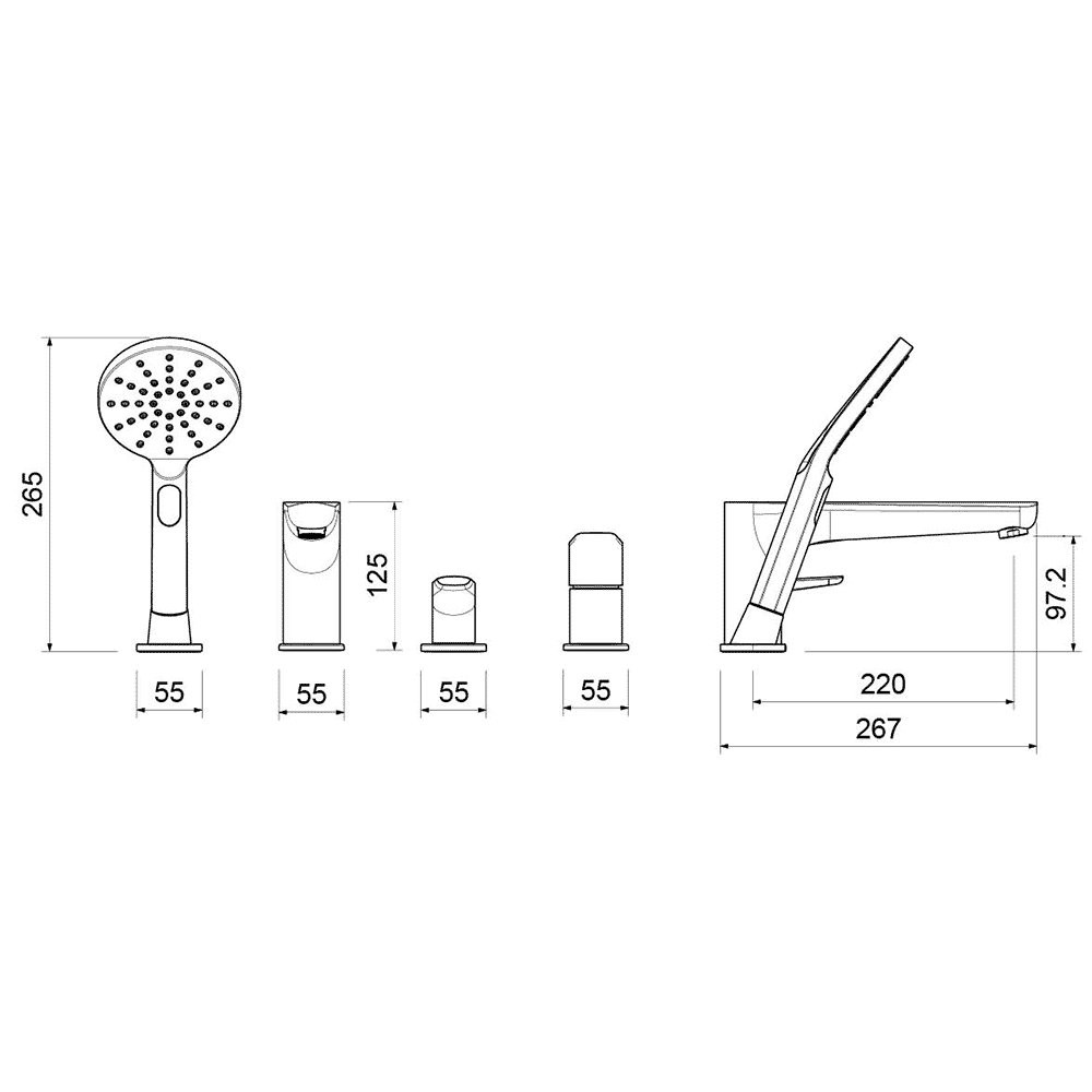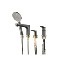 AQ1148BGM БЕТТА смеситель на борт ванны на 4 отв., оружейная сталь (шлиф. черный хром)