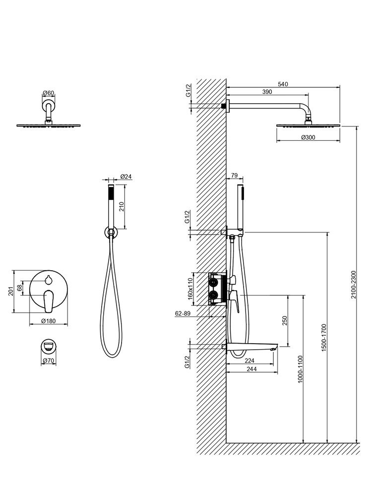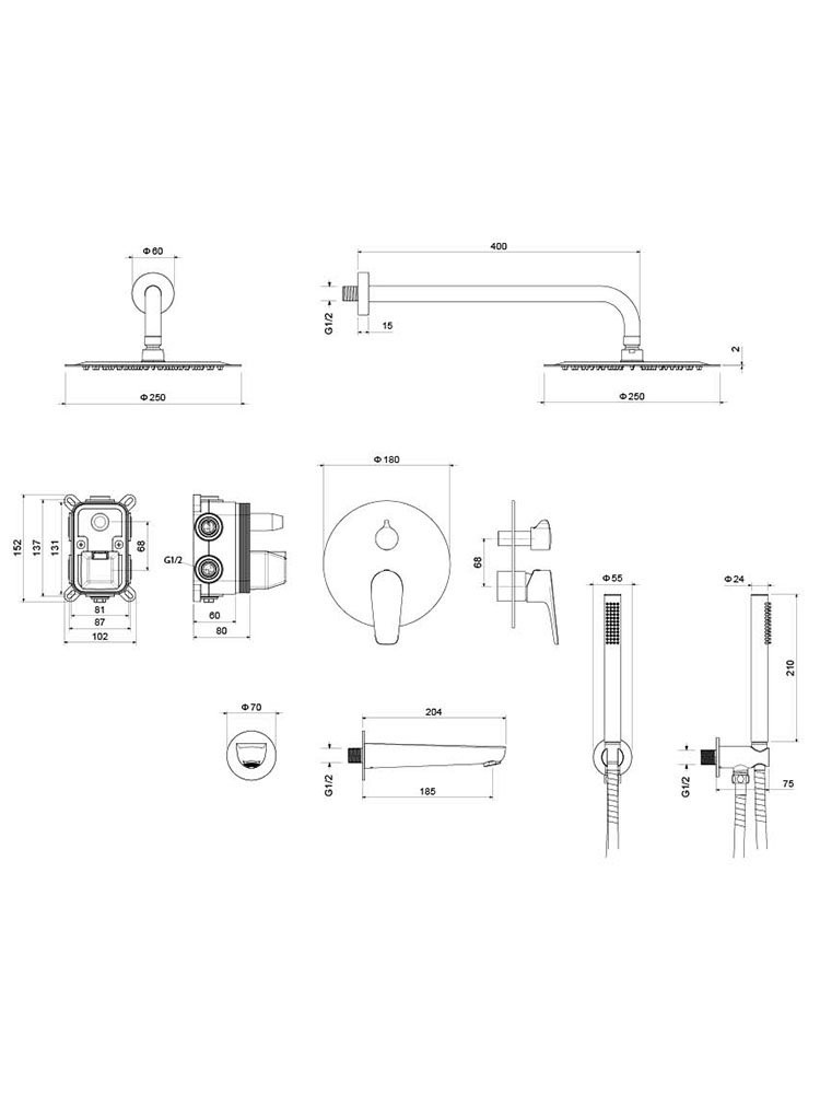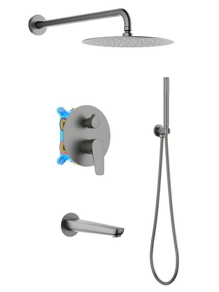 AQ1173BGM БЕТТА Set 4 в 1 душевой комплект 3 режима, оружейная сталь (шлиф. черный хром)