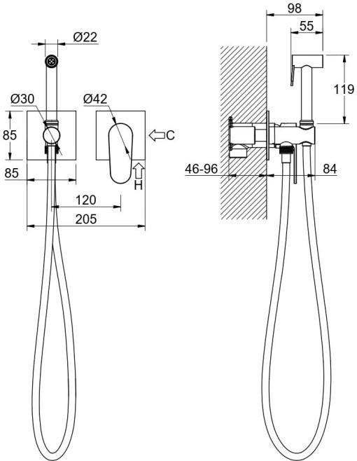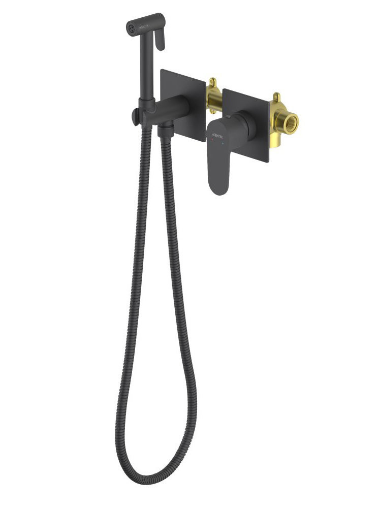 AQ1220MB ОБЕРОН комплект для гигиенического душа встроенный 2 отв. (смеситель + гигиеническая лейка + шланг), матовый черный