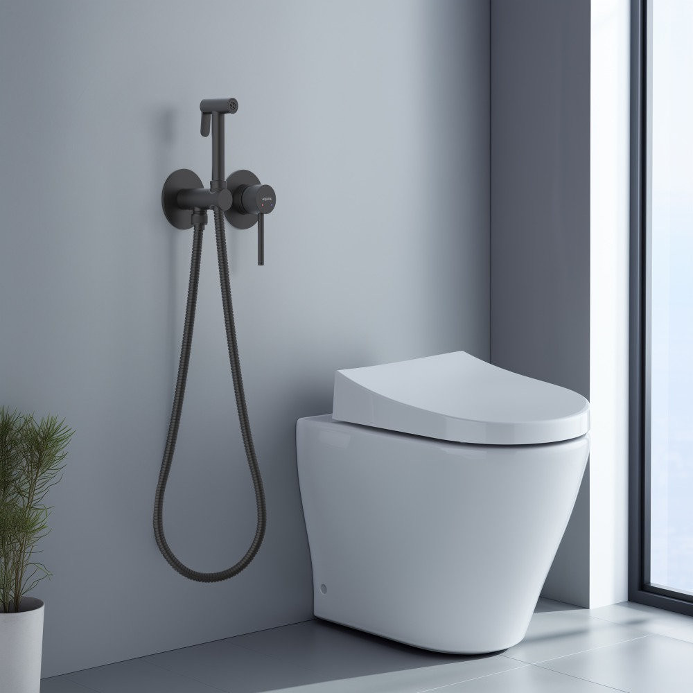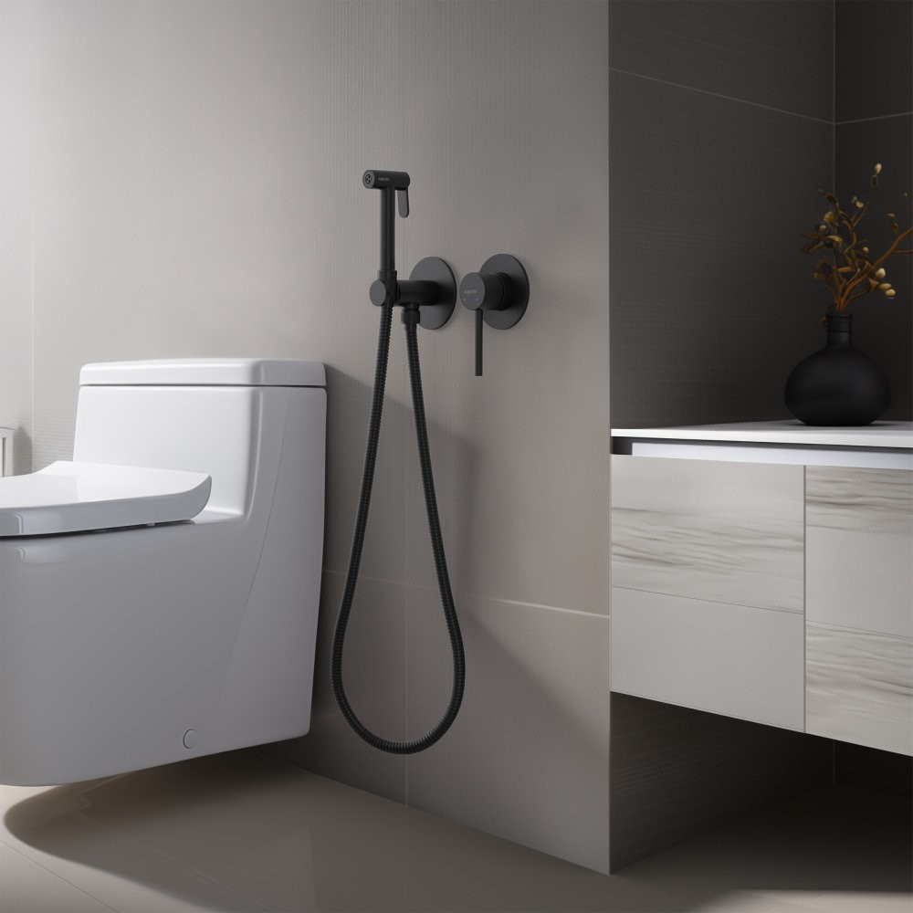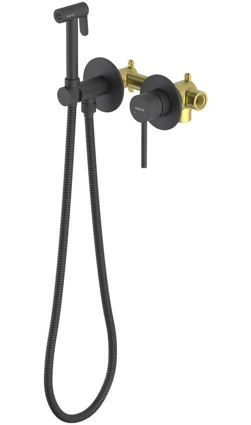 AQ1319MB ЕВРОПА комплект для гигиенического душа встроенный 2 отв. (смеситель + гигиеническая лейка + шланг), матовый черный