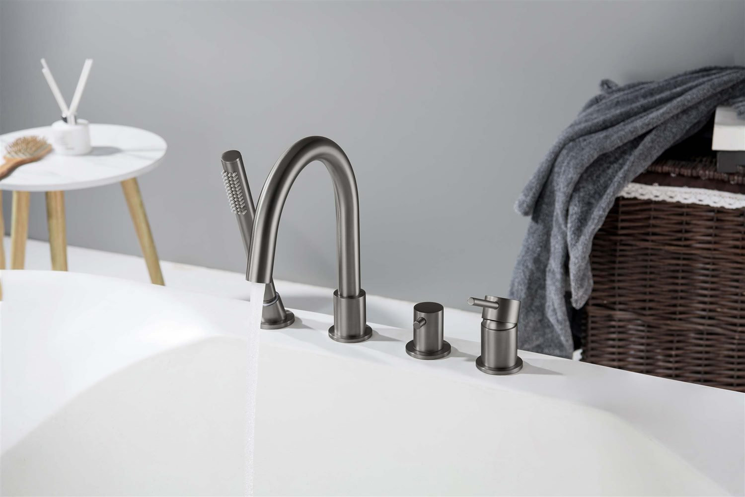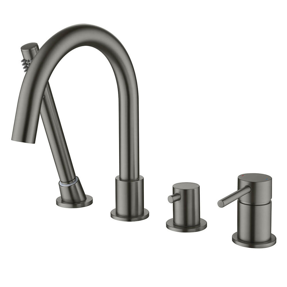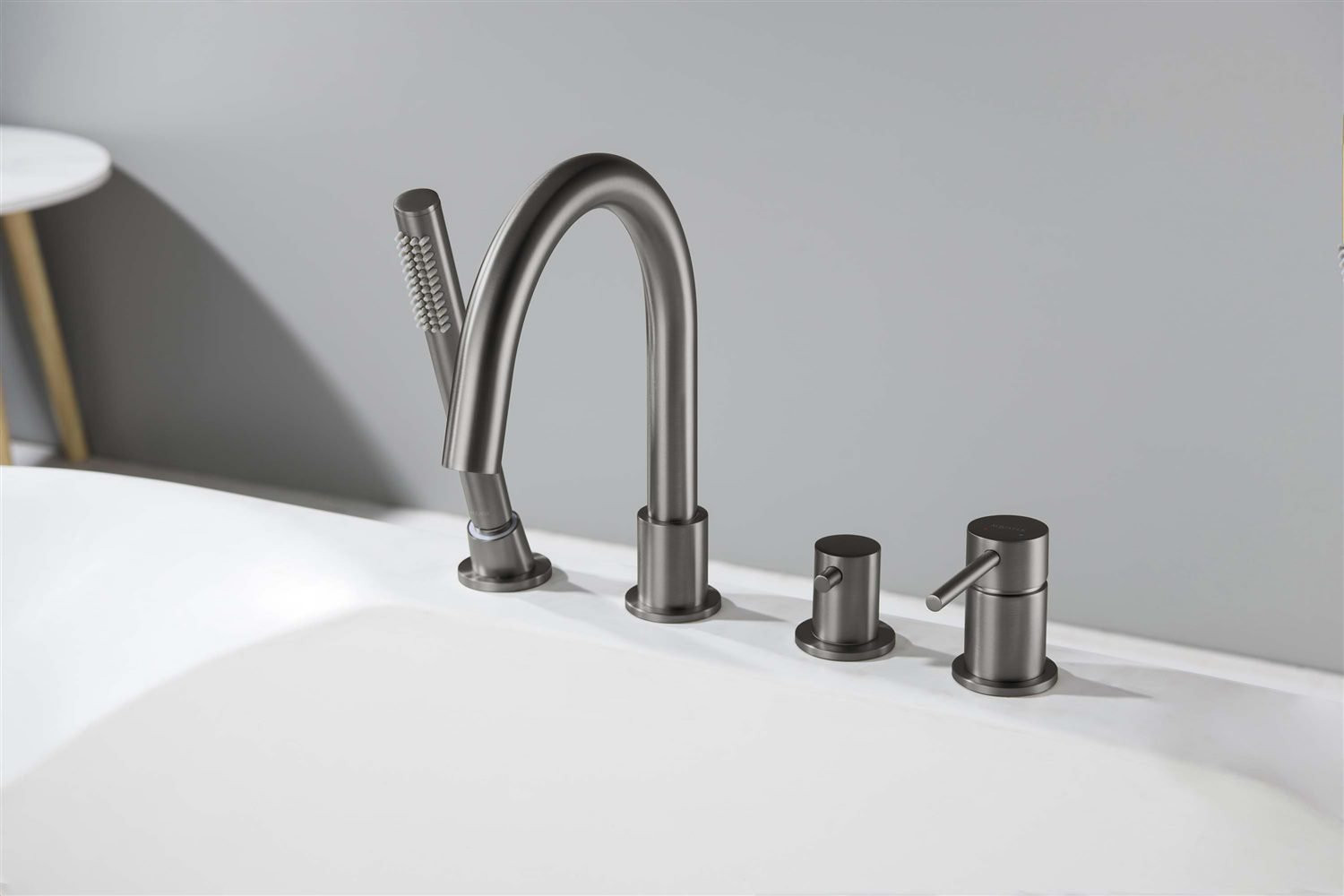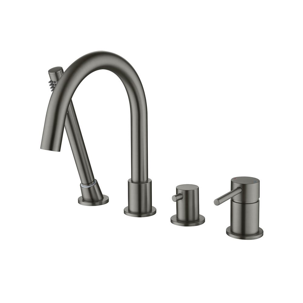 AQ1348BGM ЕВРОПА смеситель на борт ванны на 4 отв., оружейная сталь (шлиф. черный хром)