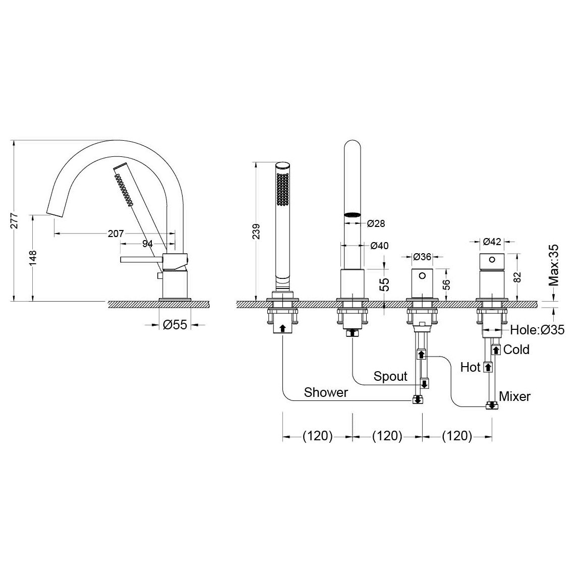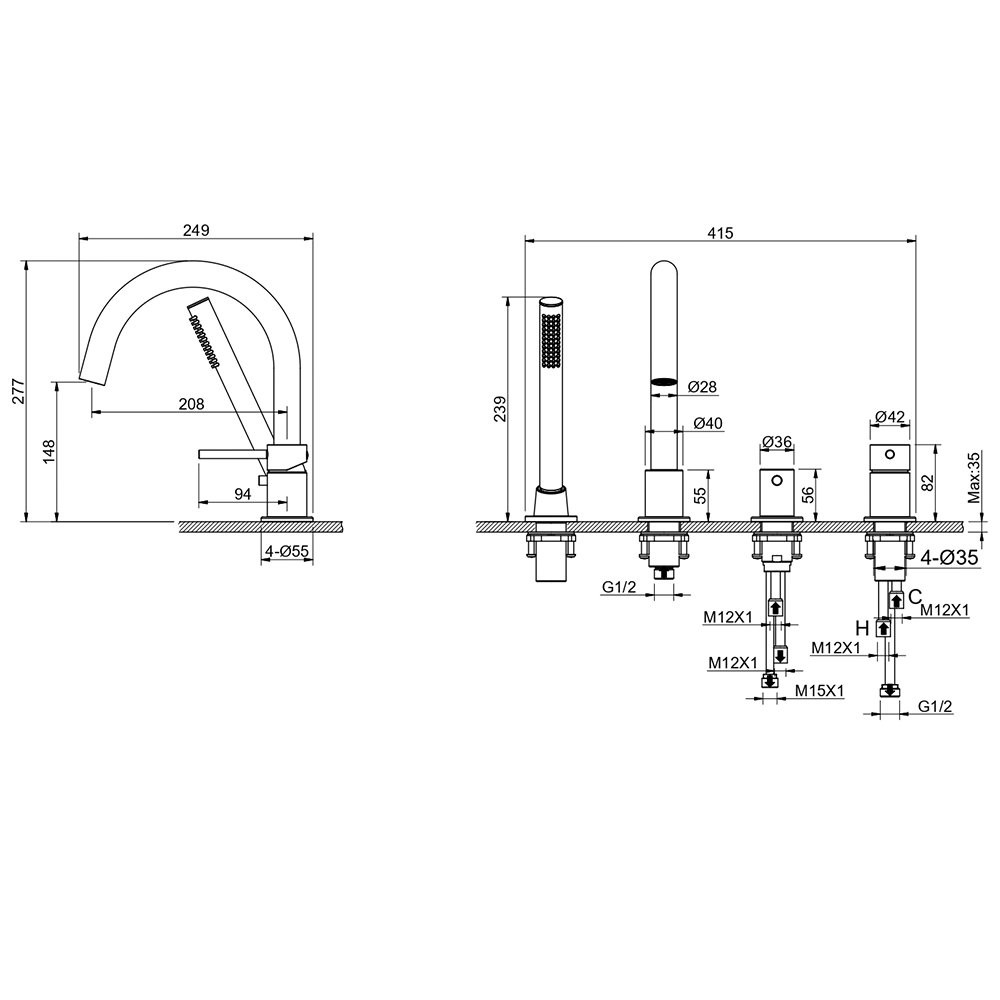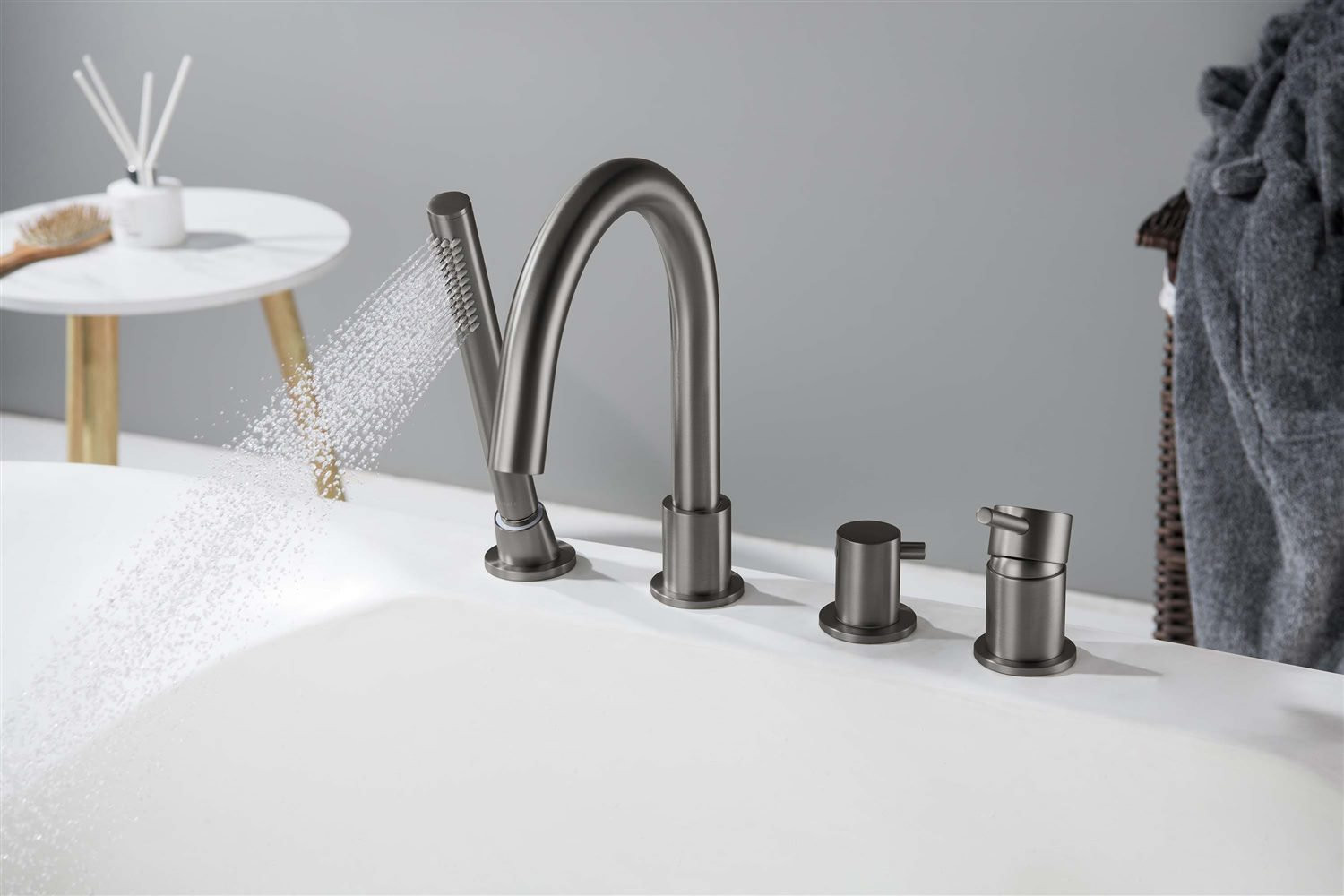 AQ1348BGM ЕВРОПА смеситель на борт ванны на 4 отв., оружейная сталь (шлиф. черный хром)