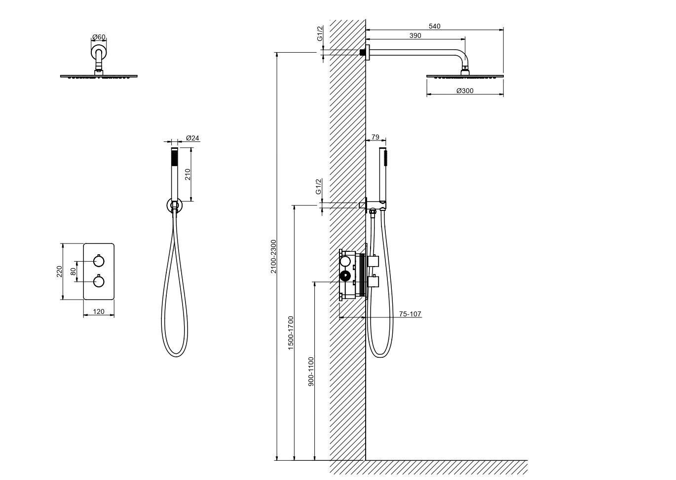 AQ1376BGM ЕВРОПА Set 3 в 1 душевой комплект 2 режима, оружейная сталь (шлиф. черный хром)