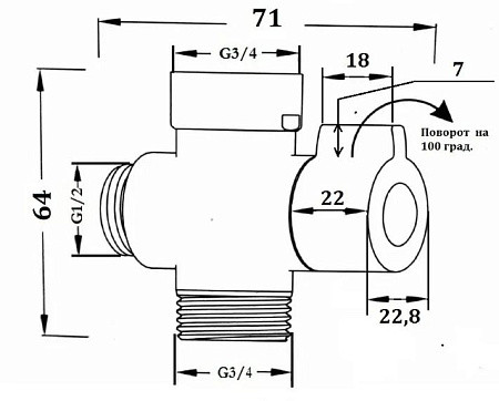 Дивертор для смесителя мех. 3/4-1/2-3/4,арт.EDV1CER