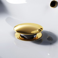 С отверстием для подключения перелива позволяющего выпускать воду из раковины при ее переполнении через отверстие в нижней части перелива. Система клик-клак управляется нажатием на пробку слива. Покрытие устойчиво к коррозии, появлению царапин, сколов и потускнению. Круглая заглушка в цвете золото. Подключение к сифону: G1 1/4 |