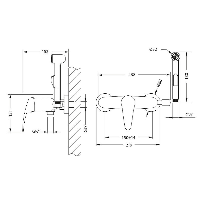 LM0418C "LINARA" Смеситель настенный с гигиеническим душем, хром
