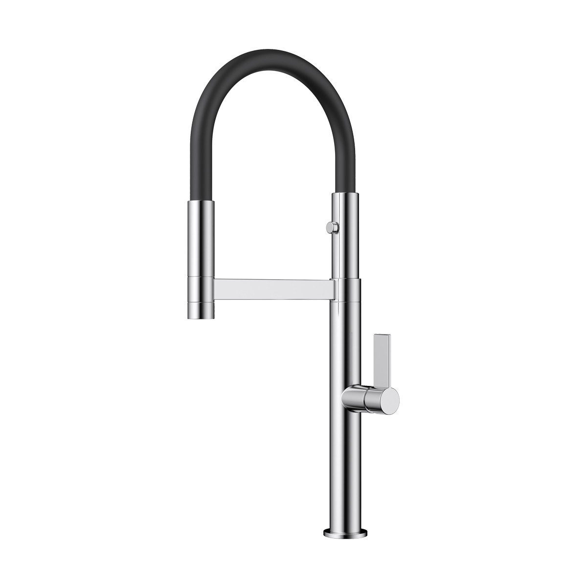 • Длина высокого поворотного излива увеличивается по желанию за счёт шланга на магните.