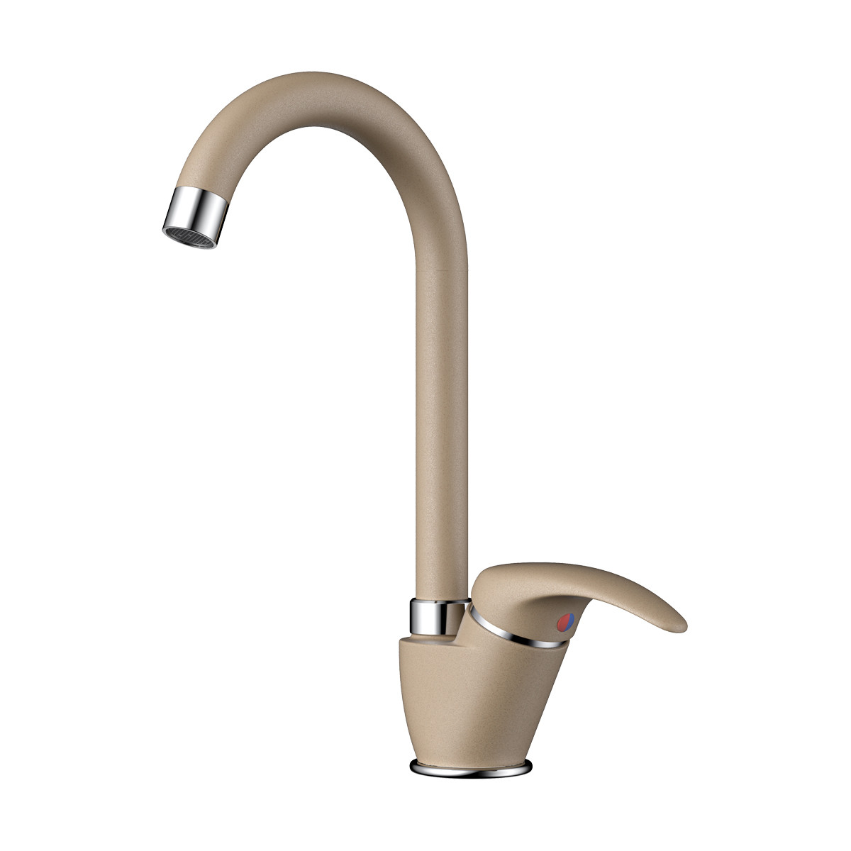 • Смеситель выполнен в современном стиле и снабжен высоким поворотным изливом;