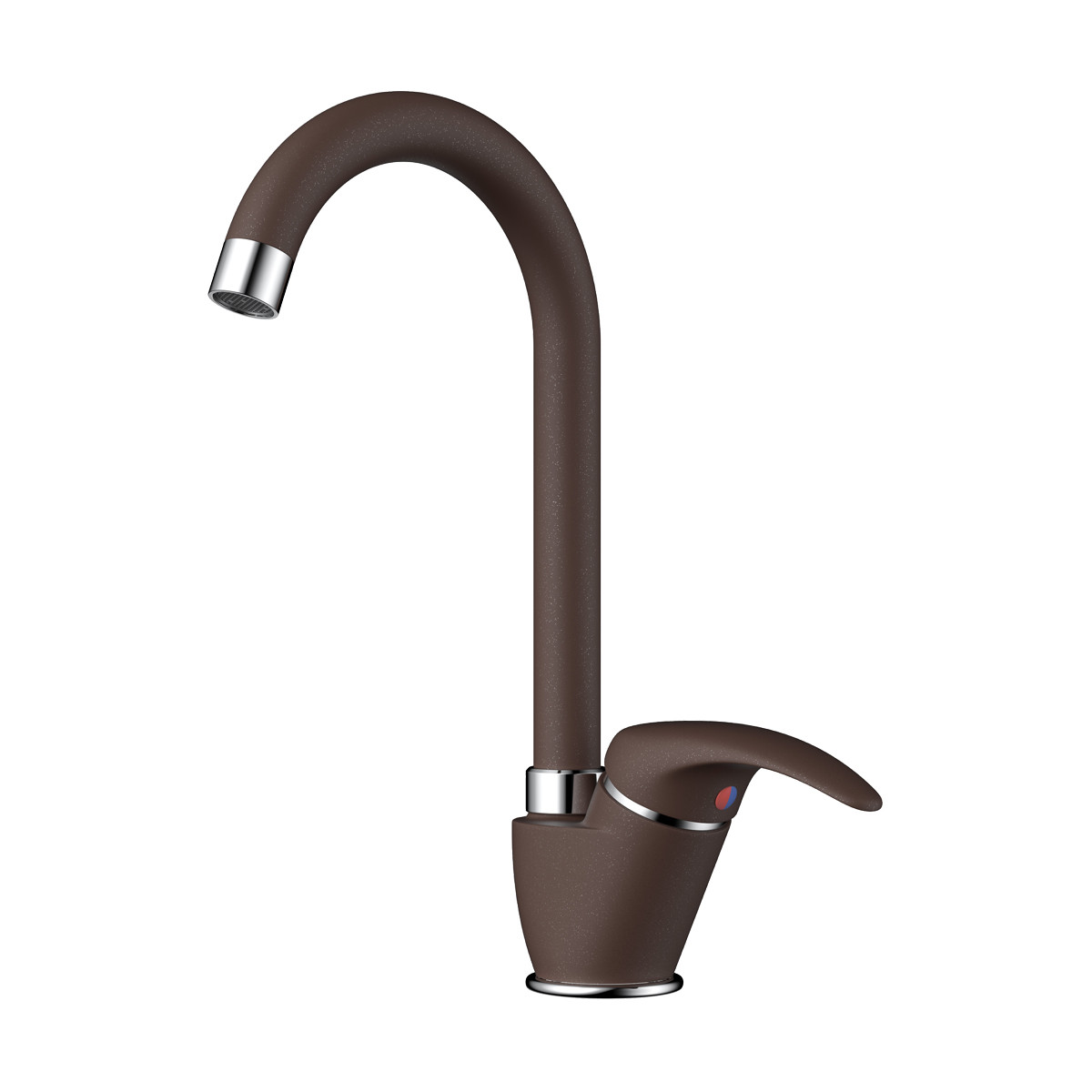 • Смеситель выполнен в современном стиле и снабжен высоким поворотным изливом;