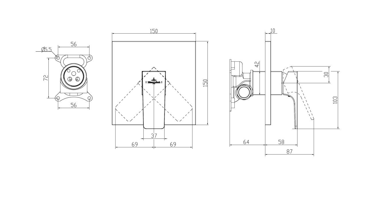 TVS125002000K5 ARCHITECTURA SQUARE Однорычажный смеситель скрытого монтажа, материал: Латунь, Чёрный (ДО ОКОНЧАНИЯ ОСТАТКОВ)