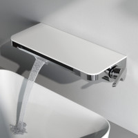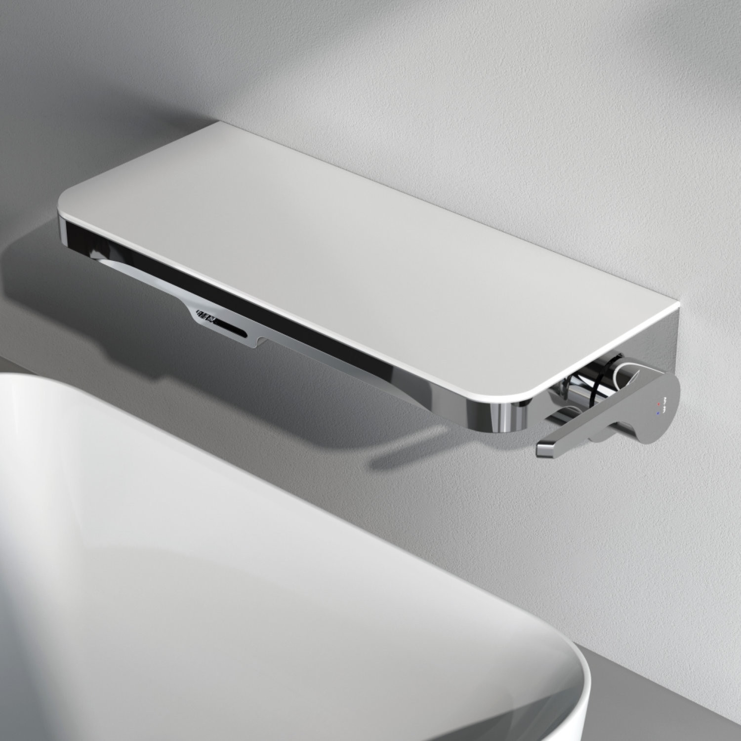 Смеситель монтируемый в стену с полкой и каскадным изливом
