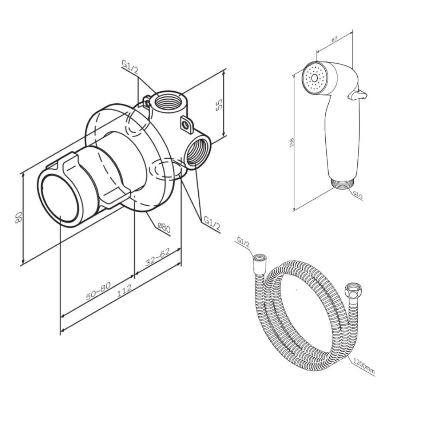 Смеситель с термостатом, монтируемый в стену с гигиеническим душем