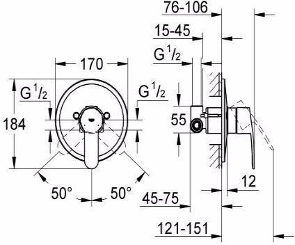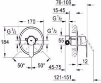 33635002 Eurostyle Cosmopolitan Смеситель для душа (внешняя и встраиваемая части), хром