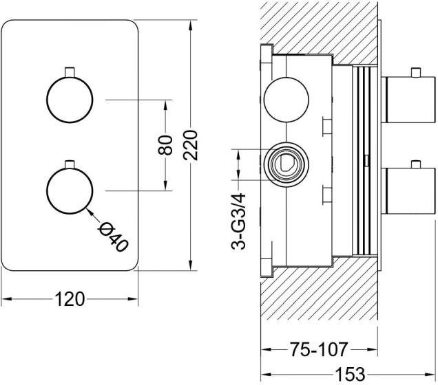 AQ1391CR ЕВРОПА термостатический смеситель для душа 1 режим (внешняя и скрытая часть)