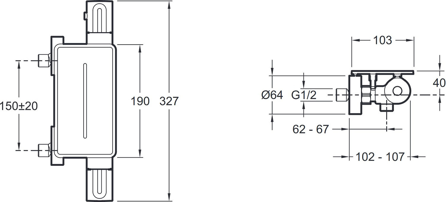 E21767-BL METRO термостатический смеситель для душа с полкой матовый черный