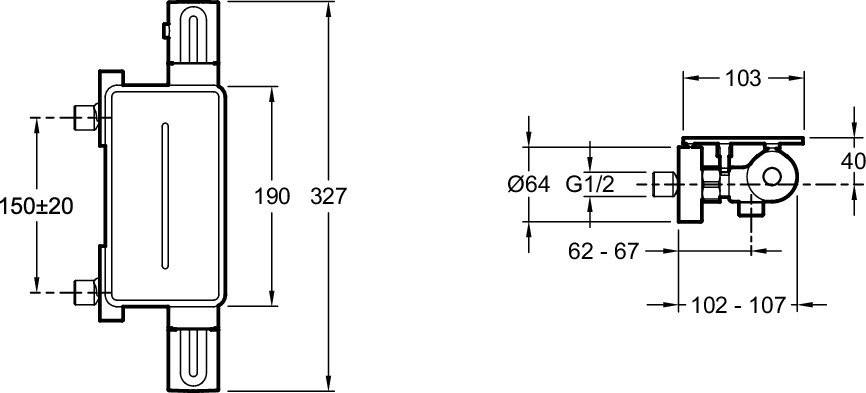 E21767-CP METRO термостатический смеситель для душа с полкой