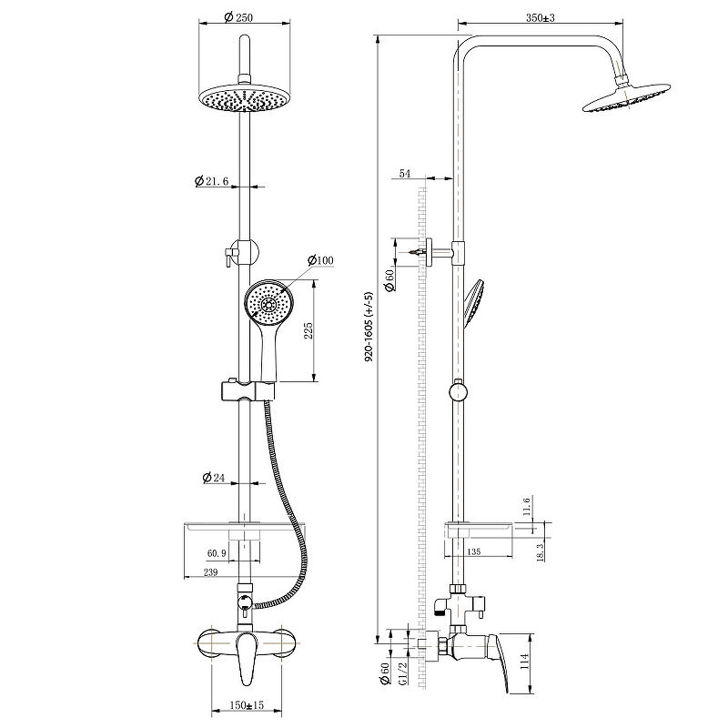 LM0460C "LINARA" Смеситель для душа с верхней душевой лейкой "Тропический дождь", хром
