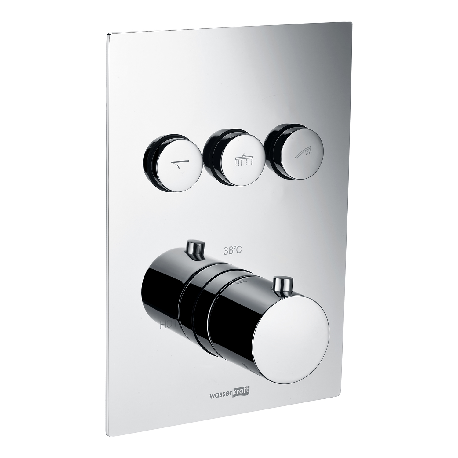 | | Переключатель на 3 выхода В данном смесителе напор воды не регулируется. Нижняя ручка служит для подачи воды и выставления комфортной температуры. Далее переключение между изливом, верхней душевой насадкой или лейкой происходит с помощью кнопочного управления. |