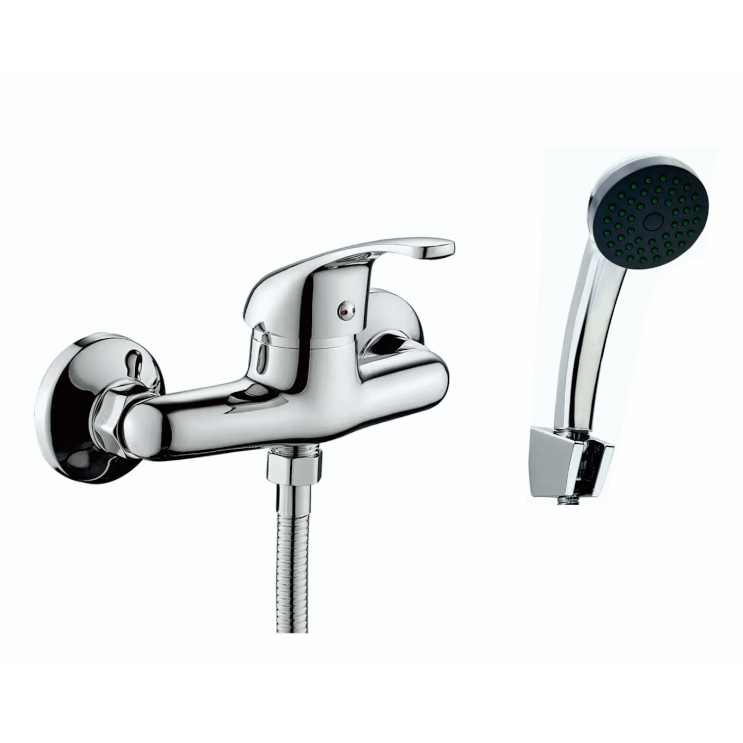 Комплектация: Смеситель, душевой шланг, душевая лейка, держатель лейки, эксцентрики, декоративные чашки.;