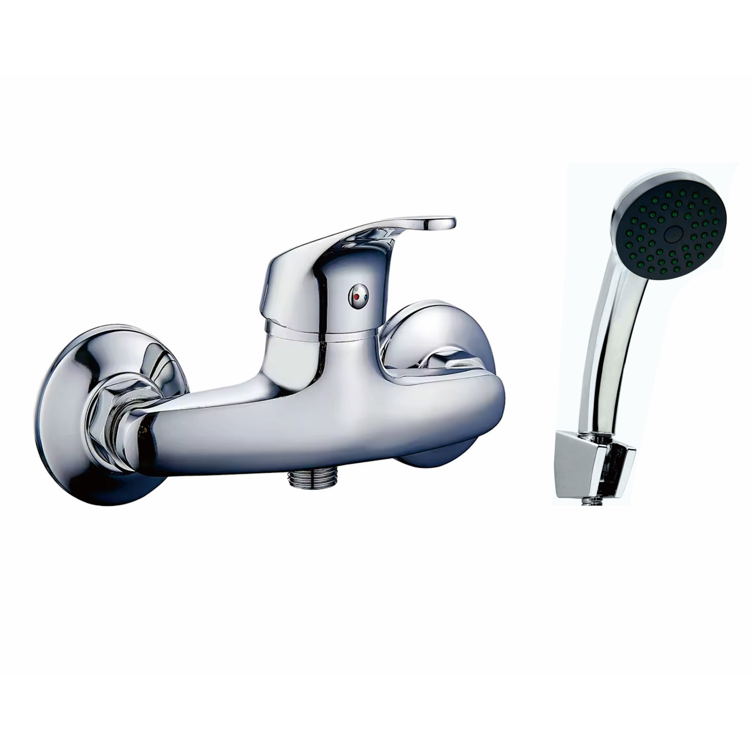 Комплектация: Смеситель, душевой шланг, душевая лейка, держатель лейки, эксцентрики, декоративные чашки.;