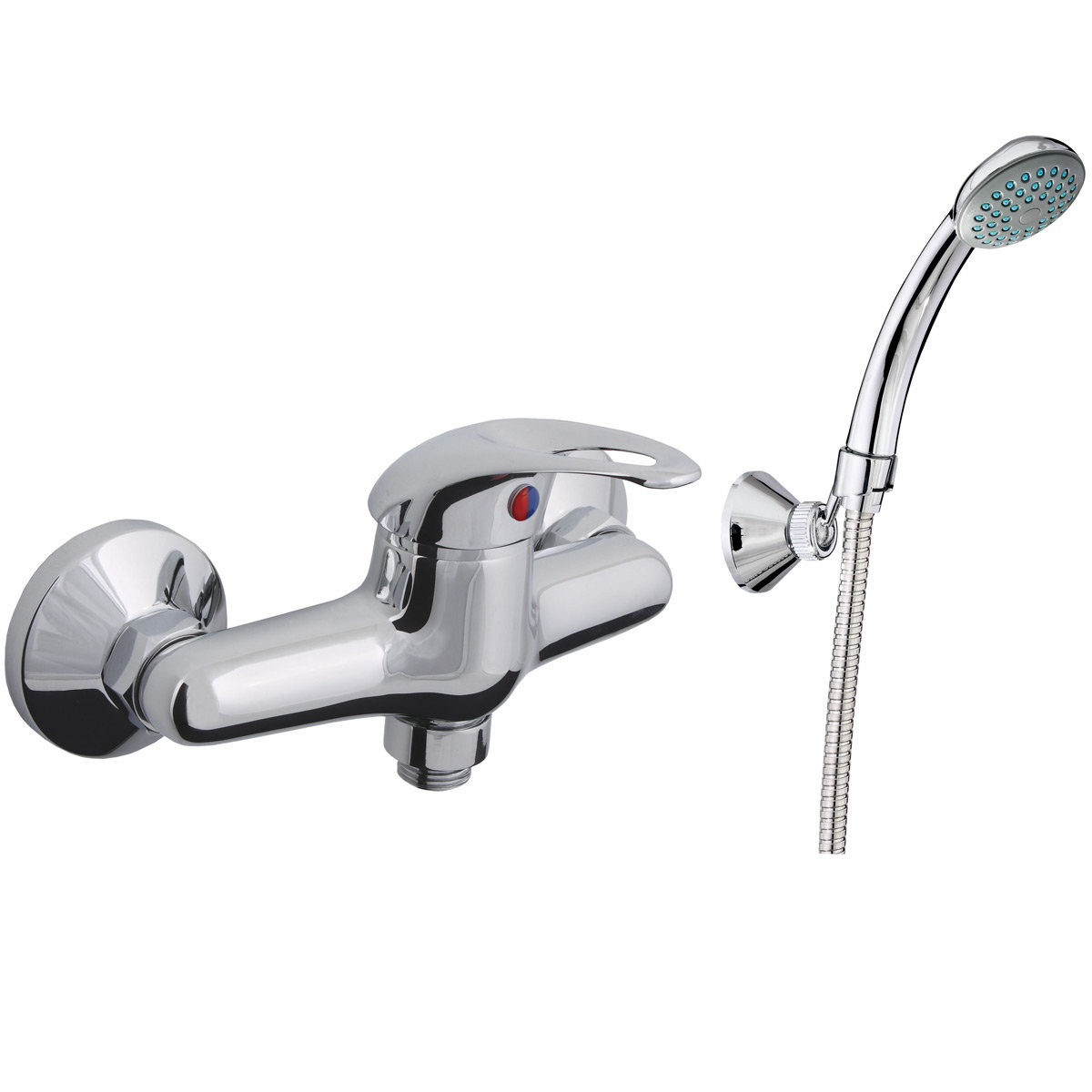 Комплектация: Смеситель, душевой шланг, душевая лейка, держатель лейки, эксцентрики, декоративные чашки.;