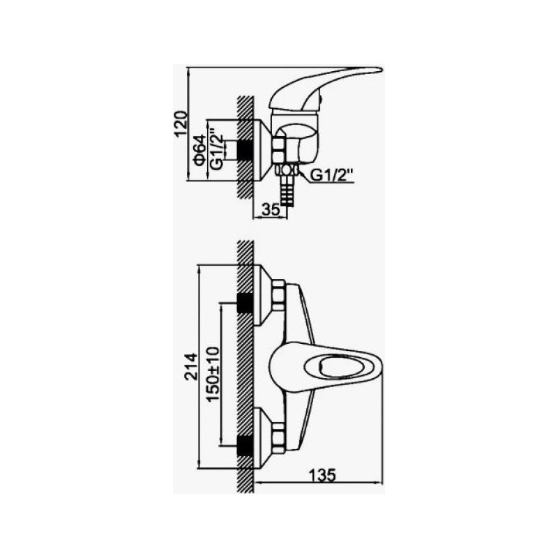 Смеситель для душа D-Lin D160351, хром Управление рычажное. Душевой гарнитур в комплекте: да. Длина шланга: 150 см.