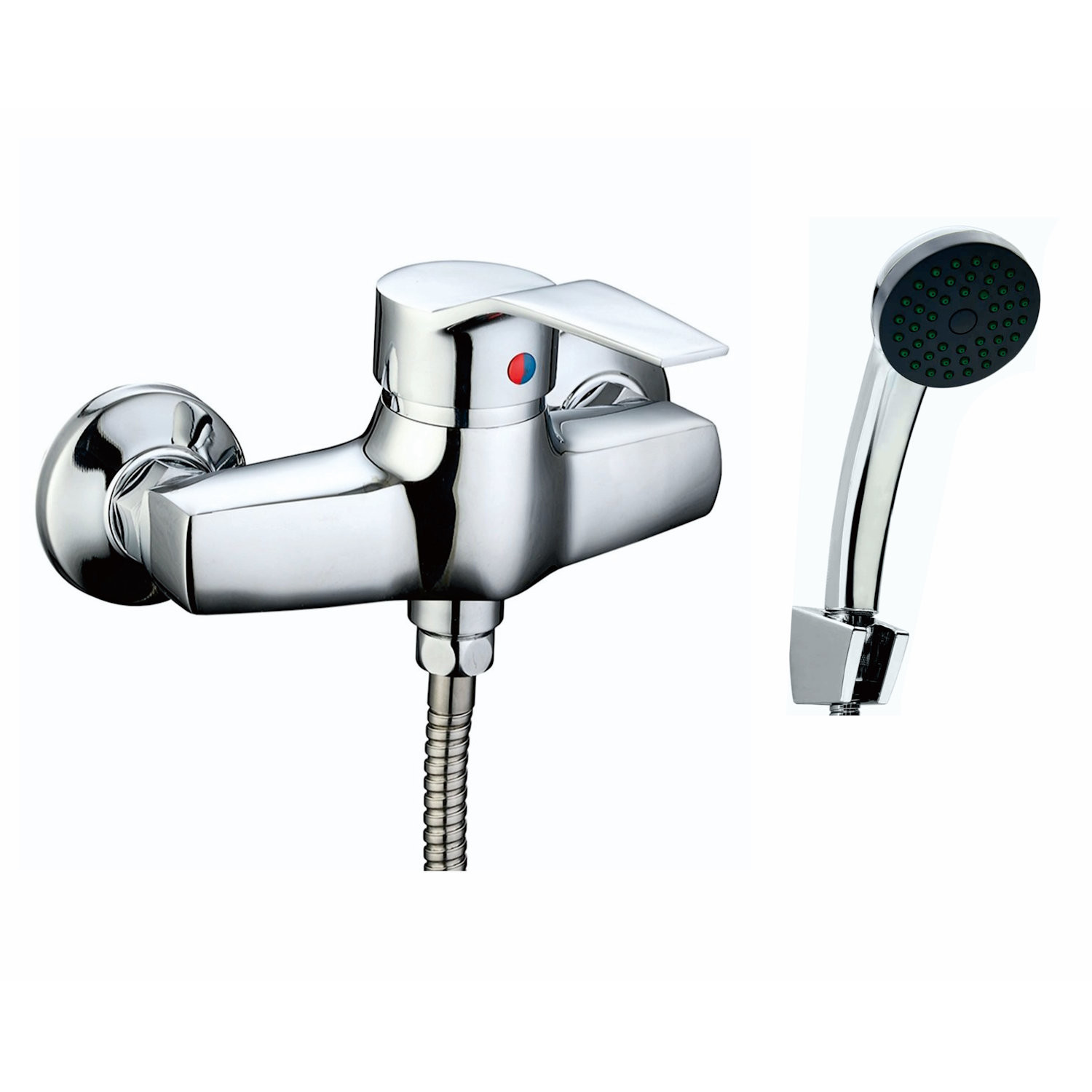 Комплектация: Смеситель, душевой шланг, душевая лейка, держатель лейки, эксцентрики, декоративные чашки.;