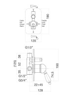 Смеситель для душа Fiore встраиваемый. На 2 потока.