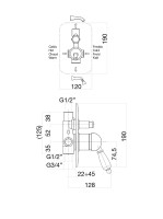 Смеситель для душа Fiore встраиваемый. На 2 потока. Черная ручка.
