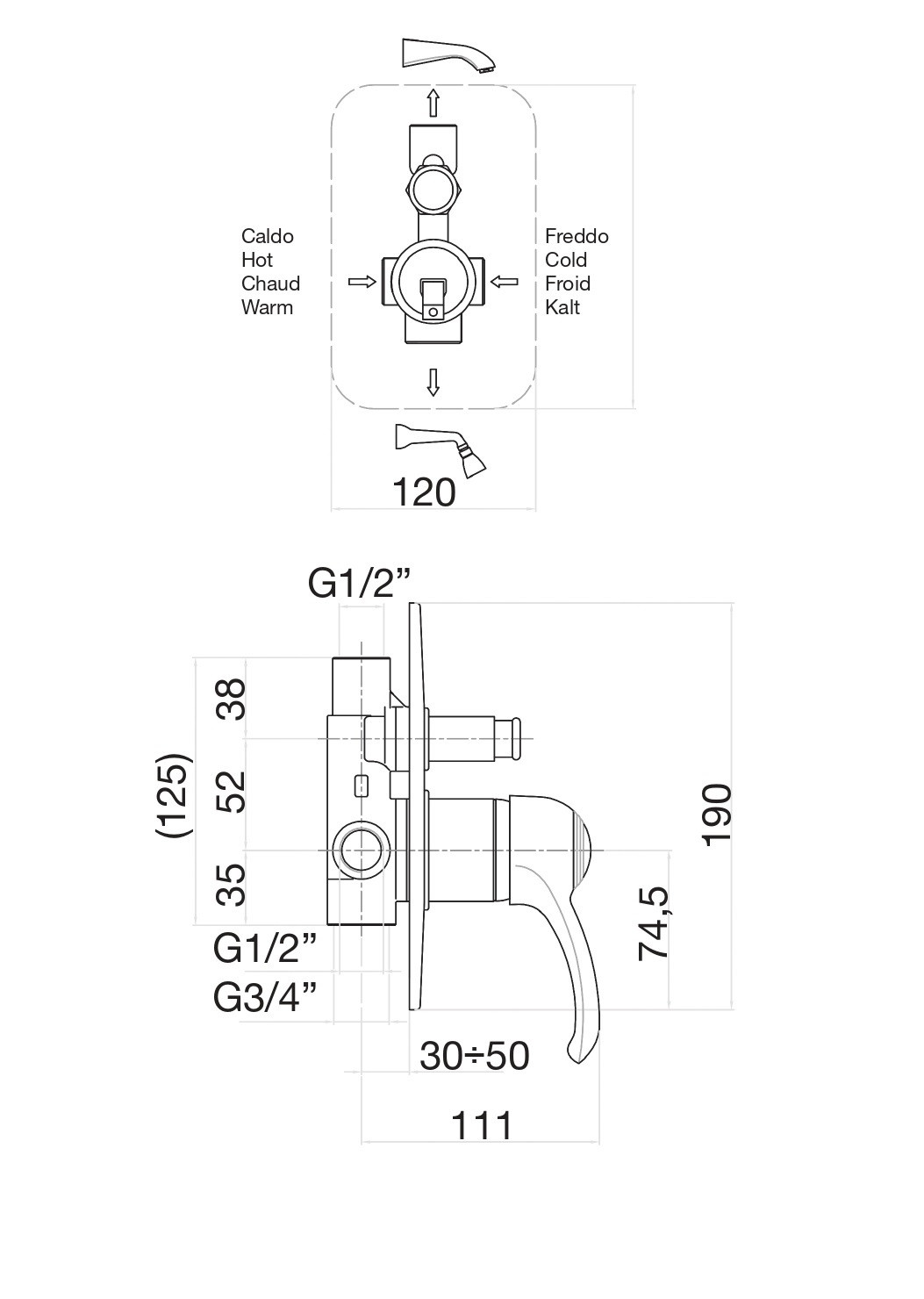 Смеситель для душа Fiore встраиваемый. На 2 потока.