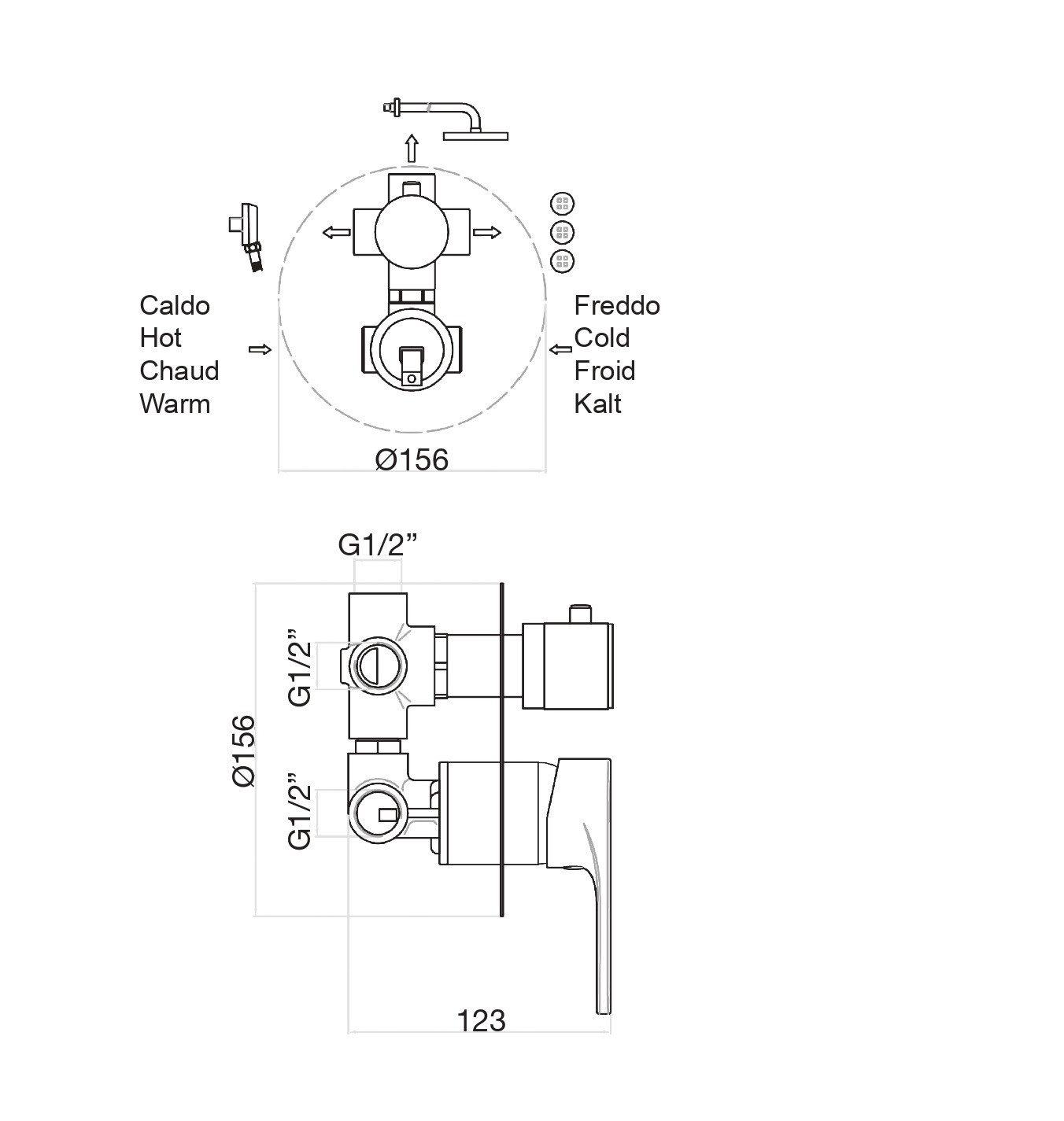 Смеситель для душа Fiore встраиваемый. На 3 потока.