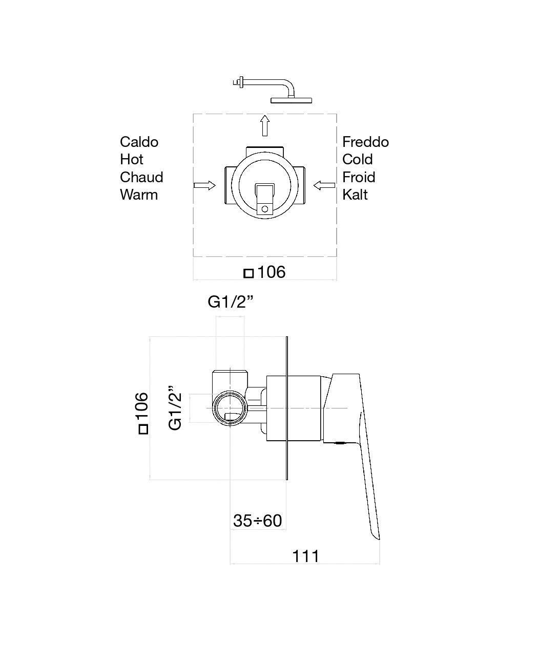 Смеситель для душа Fiore встраиваемый. На 1 поток.