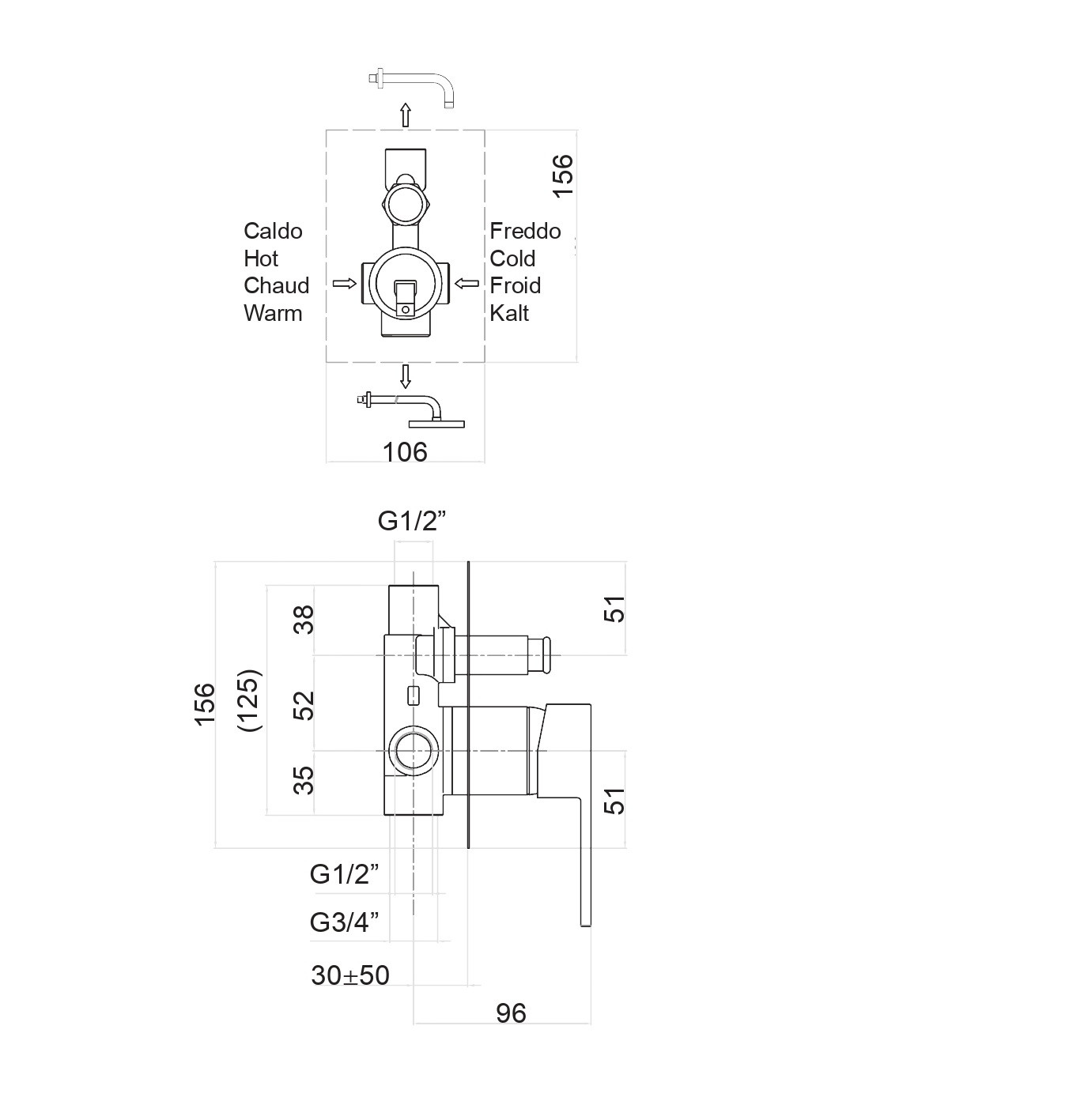 Смеситель для душа Fiore встраиваемый. На 2 потока.