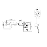 Комплектация: смеситель, душевая лейка, шланг, эксцентрики, настенный держатель;