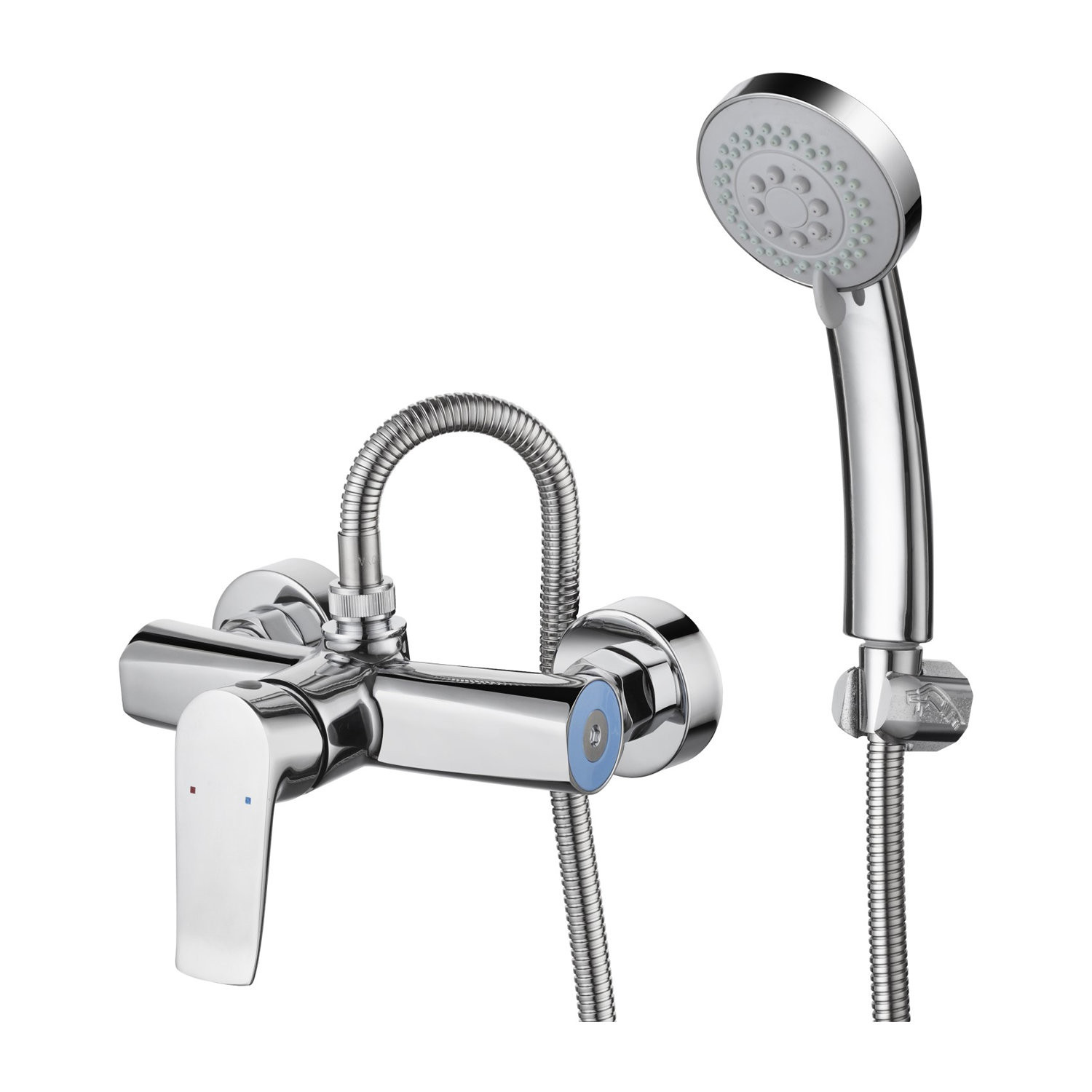 Комплектация: смеситель, душевая лейка, шланг, держатель лейки, декоративные отражатели, эксцентрики;