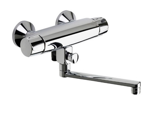Tермостатический смеситель для ванны и душа с эксцентриковыми соединителями с затворами и розетками подключение горячей воды с левой стороны