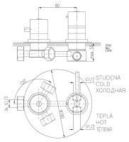 Встраиваемый термостат для ванны Rav Slezak Dunaj Termostat DT387, однорычажный, с керамическим переключателем на 3 позиции. Декоративная латунная крышка диаметром 180 мм. Подвод воды G1/2. В комплекте внешняя и внутренняя части смесителя и комплект крепления.