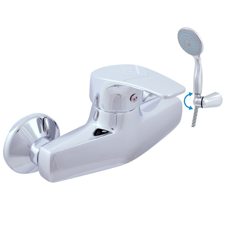 Комплектация: смеситель, душевая лейка, шланг, инструкция;