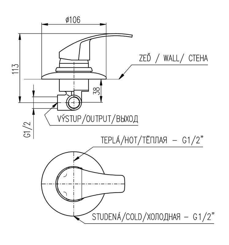 Rav Slezak Kongo K083 смеситель для душа. Декоративная крышка d=106 мм. Установка в стену.