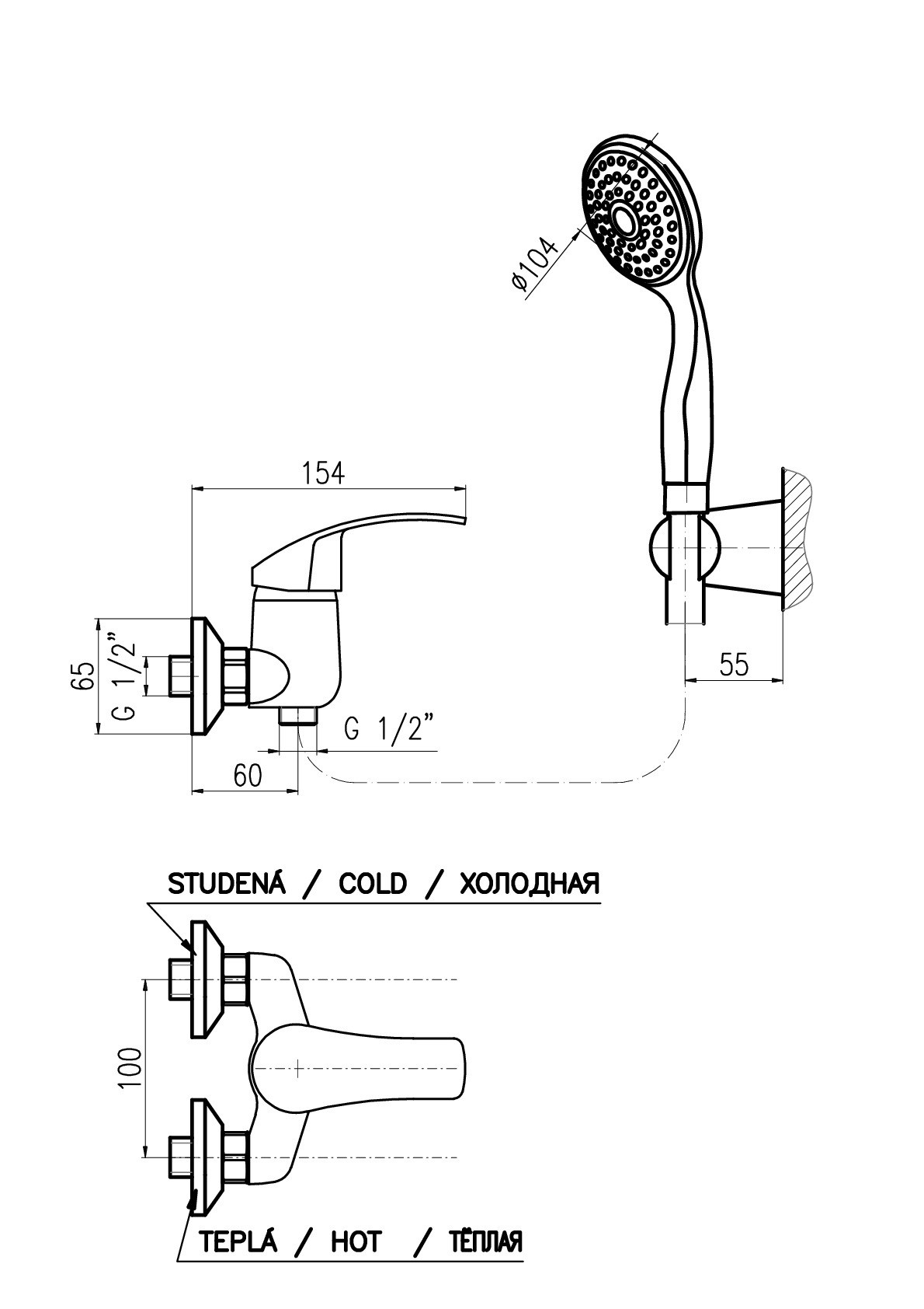 Rav Slezak Mississippi MS080.5/2 смеситель для душа с душем в комплекте. Шланг -150 см. Установка на стену. Подвижный держатель. Установка на стену.