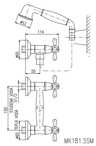 Rav Slezak Morava retro MK180.5/2 смеситель для душа, с душем в комплекте. Шланг -150 см. Подвижный держатель. Установка на стену.