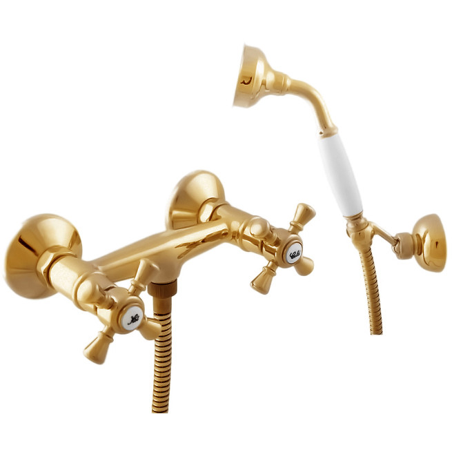 Смеситель для душа Rav Slezak Morava retro MK380.5/2 монолитный, с душевым гарнитуром. Латунные рукоятки. Качественные керамические кран буксы, гарантируют долговечность и мягкий поток воды, производство Германия. Металлический шланг с двойной оплеткой, длиной 1500 мм. Латунная душевая лейка с керамической ручкой. Настенный держатель для лейки с возможностью менять угол наклона. В комплекте смеситель, шланг, душевая лейка, держатель для лейки и комплект крепления.