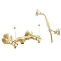 Смеситель для душа Rav Slezak Morava retro MK580.5/2 монолитный, с душевым гарнитуром. Латунные рукоятки. Качественные керамические кран буксы, гарантируют долговечность и мягкий поток воды, производство Германия. Металлический шланг с двойной оплеткой, длиной 1500 мм. Латунная душевая лейка с керамической ручкой. Настенный держатель для лейки с возможностью менять угол наклона. В комплекте смеситель, шланг, душевая лейка, держатель для лейки и комплект крепления.