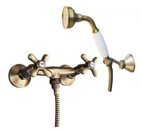 Смеситель для душа Rav Slezak Morava retro MK680.5/2 монолитный, с душевым гарнитуром. Латунные рукоятки. Качественные керамические кран буксы, гарантируют долговечность и мягкий поток воды, производство Германия. Металлический шланг с двойной оплеткой, длиной 1500 мм. Латунная душевая лейка с керамической ручкой. Настенный держатель для лейки с возможностью менять угол наклона. В комплекте смеситель, шланг, душевая лейка, держатель для лейки и комплект крепления.