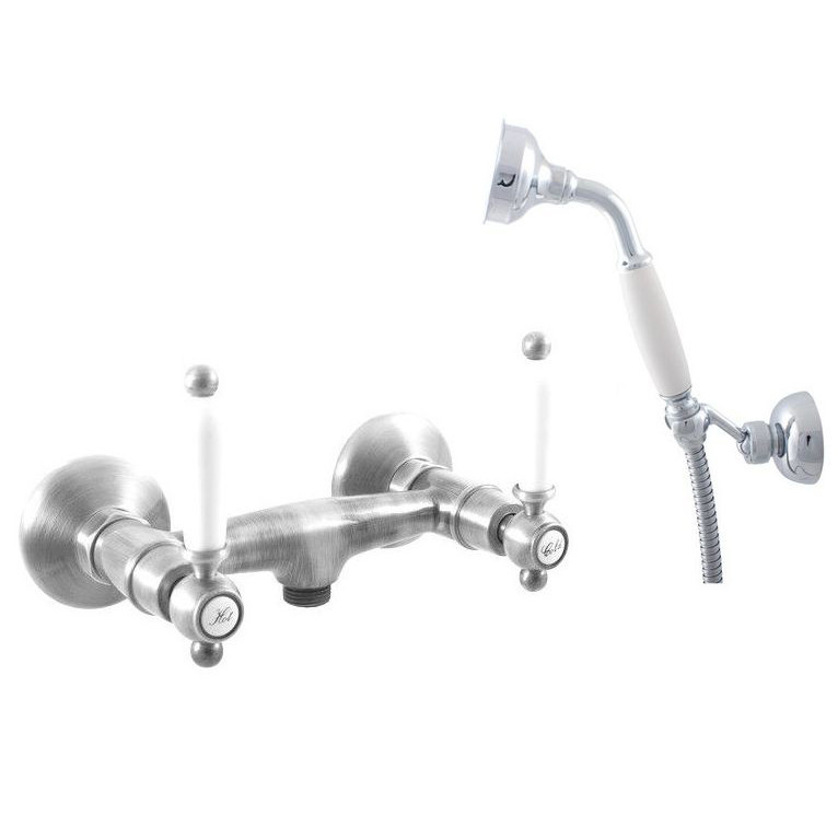 Смеситель для душа Rav Slezak Morava retro MK880.5/2 монолитный, с душевым гарнитуром. Латунные рукоятки. Качественные керамические кран буксы, гарантируют долговечность и мягкий поток воды, производство Германия. Металлический шланг с двойной оплеткой, длиной 1500 мм. Латунная душевая лейка с керамической ручкой. Настенный держатель для лейки с возможностью менять угол наклона. В комплекте смеситель, шланг, душевая лейка, держатель для лейки и комплект крепления.
