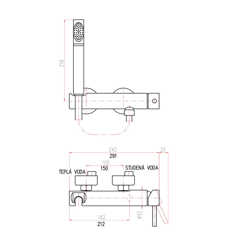 Rav Slezak Seina SE980.5/2 смеситель для душа. С ручным гигиеническим душем в комплекте. Монтаж в стену.