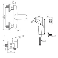 Смеситель для душа с гигиенической лейкой, держателем и шлангом